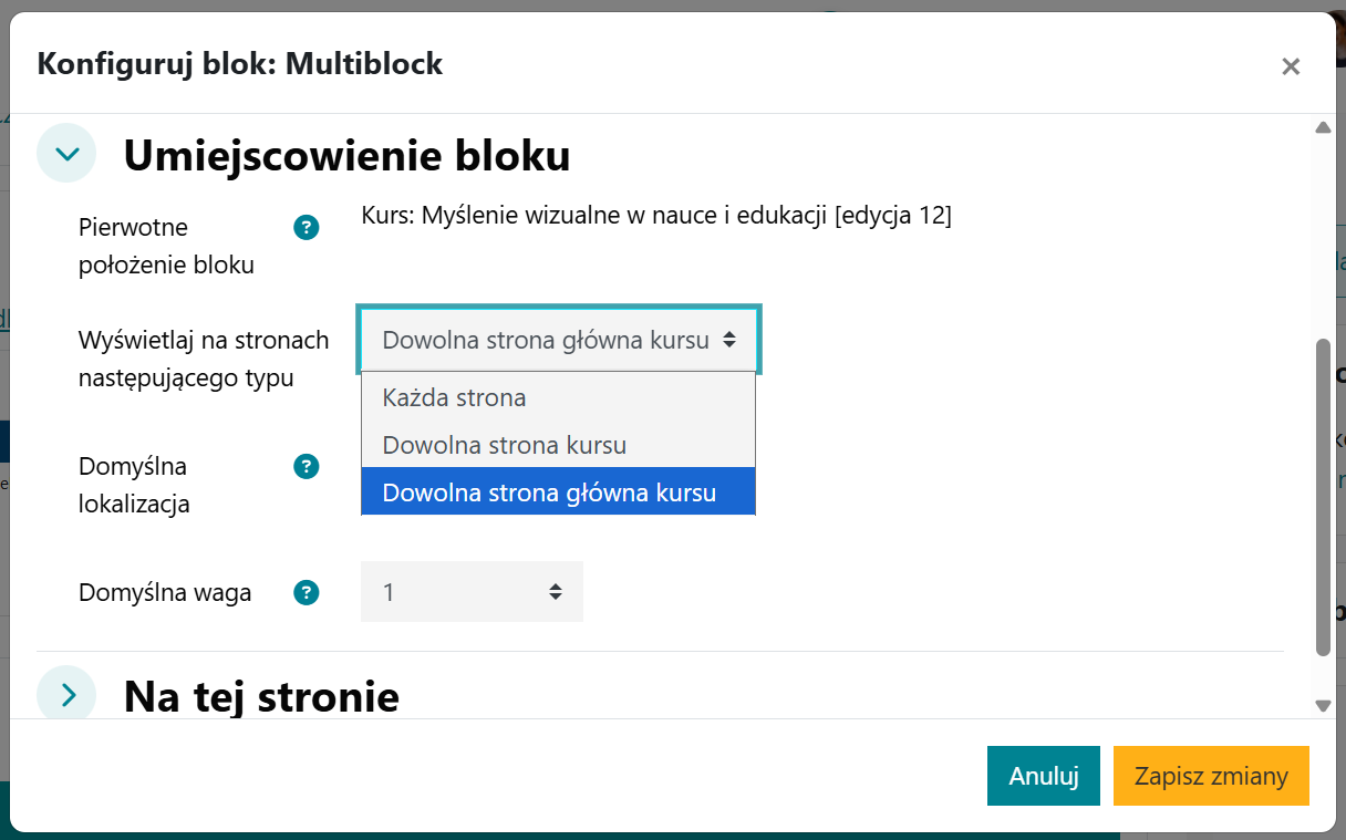Wybierz umiejscowienie bloku, czyli strony, na których multiblock będzie widoczny.