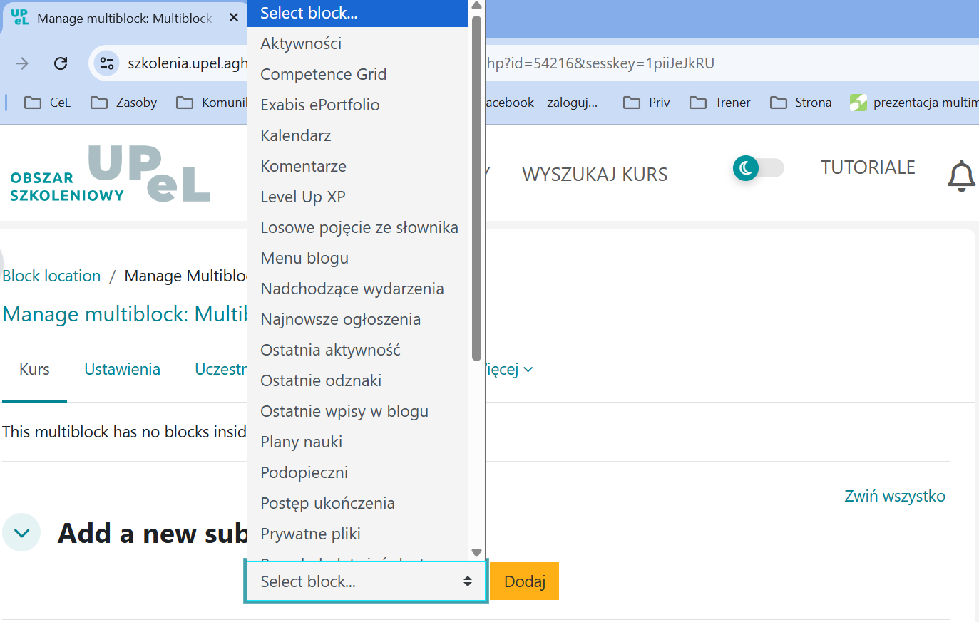 lub dodaj do multiblocku bloki już istniejące, również wybierając z rozwijanej listy.