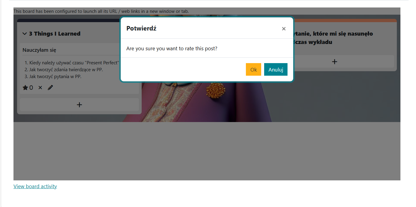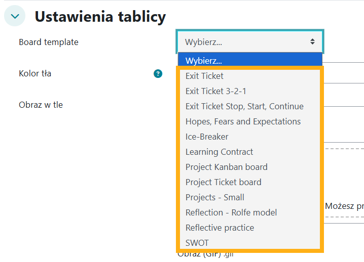 Wtyczka TABLICA to aktywność typu tablica kanban / tablica pomysłów, przypominająca Padlet lub Jamboard.